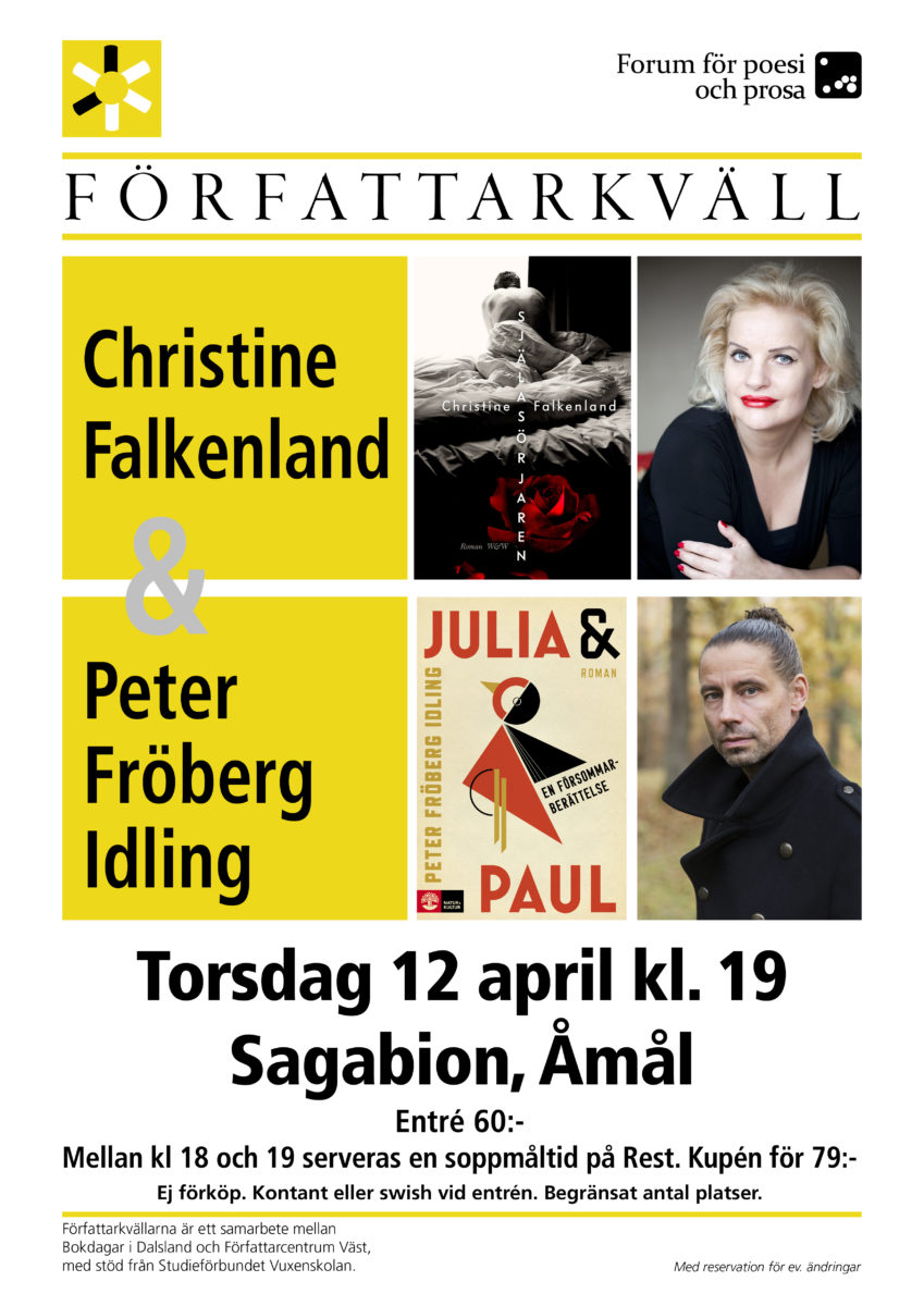 Bokdagar i Dalslands och Forum för poesi och prosas författarkväll torsdag 12 april på Sagabion i Åmål: