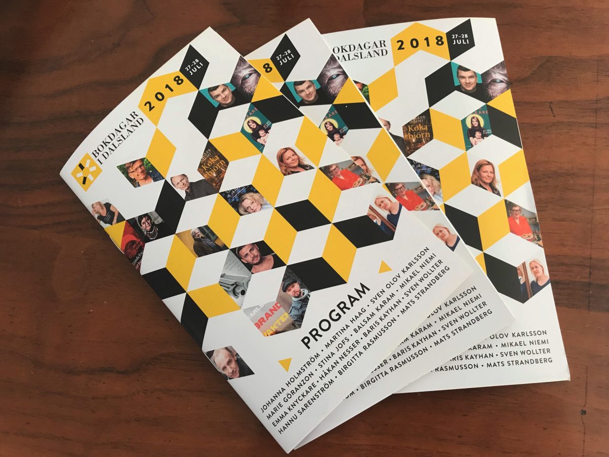 Bokdagar i Dalsland har lagom till sommarens stora litteraturfest 27-28 juli fått ny kostym och klänning, tack vare formgivarproffset Kajsa Bergström Feiff, baserad i Göteborg och som bland annat formgivit Göteborgs nya romanfestivals trycksaker och tidskriften Ord & Bild och som för övrigt skriver roliga och tankeväckande krönikor i Göteborgs-Posten. Affischer, programhäften och Korpgluggen – allt har fått nya kläder. Till och med en ny, glad Barnens Bokdagar-logga har vi fått.