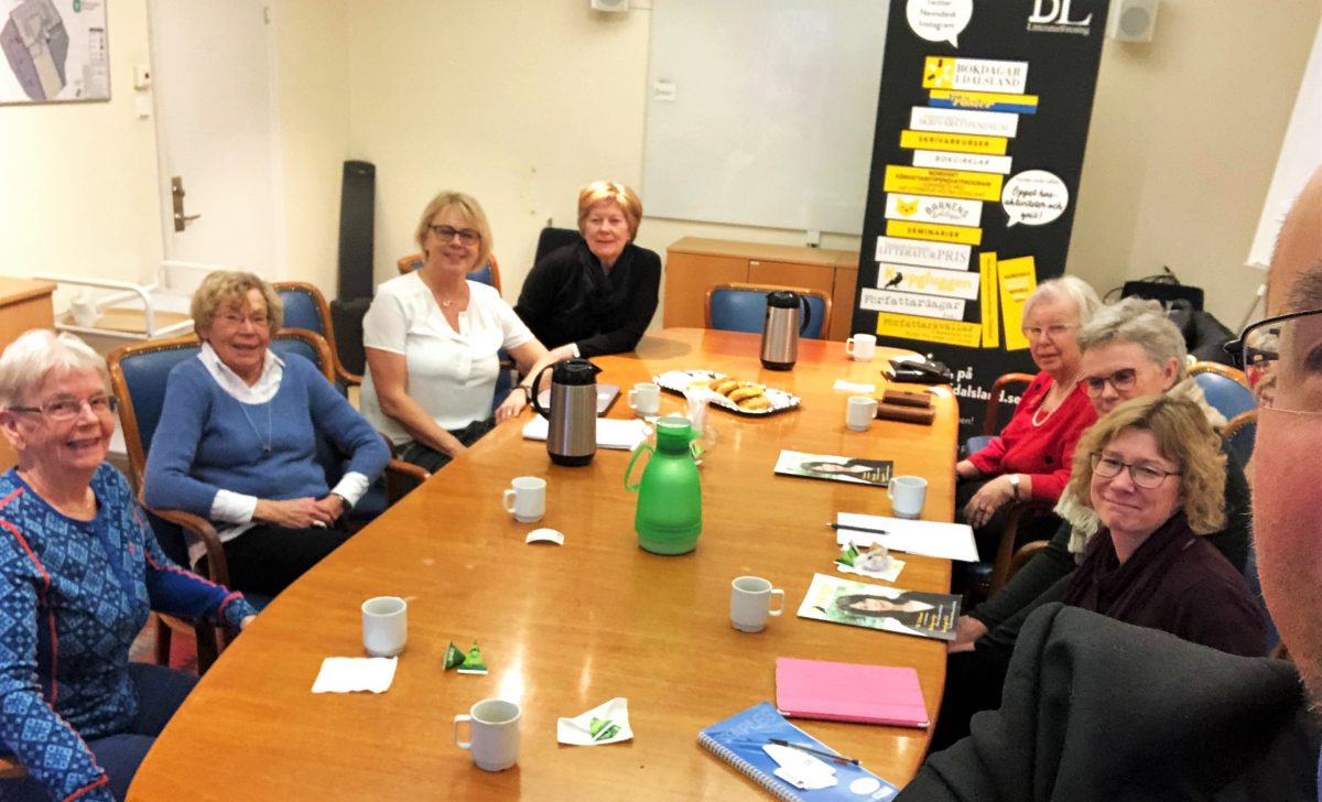 Bokdagar i Dalslands litteraturgrupp och Säffle kommuns kulturchef, bibliotekschef och bibliotekarie vid mötet i Säffle stadshus den 20 december.