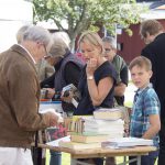Korpgluggens redaktör Lars Gustavsson som initierad säljare vid Bokbordet under Författardagarna i Åmål.