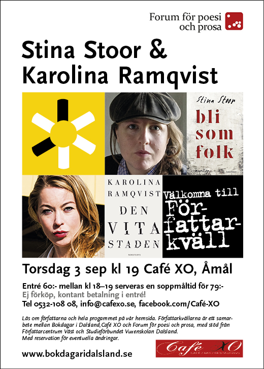 Läs merNu välkomnas du till ännu ett nytt evenemang i Bokdagar i Dalslands regi. Vi vågar utlova en fantastisk författarkväll med Stina Stoor och Karolina Ramqvist när Café XO i Åmål slår upp dörrarna den…