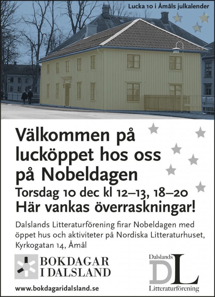 Läs merVi öppnar ”luckan” i Åmåls julkalender hos oss på Nordiska Litteraturhuset, Kyrkogatan 14 i Åmål på Nobeldagen den 10 december kl 12–13 och kl 17–20. Varmt välkomna hit på en och annan…