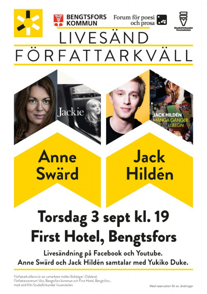 Dubbla Augustvinnaren Jessica Schiefauer på livesänd författarkväll från Steneby bibliotek den 8 oktober!